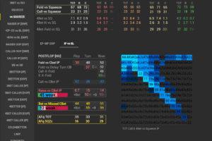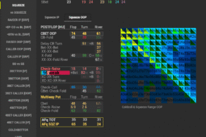 En este ejemplo, estamos en la BB. Un jugador hace Open Raise en CO y otro jugador hace call en la SB. Automáticamente se mostrarán los paneles de “vs Squeeze” el cual mostrará: