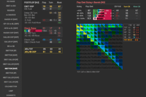 En este ejemplo, hacemos un Open Raise desde MP y la BB nos paga. Aquí es donde el panel postflop “Caller OOP” se abrirá automáticamente, mostrando la información y stats más importantes y también con diagramas postflop.